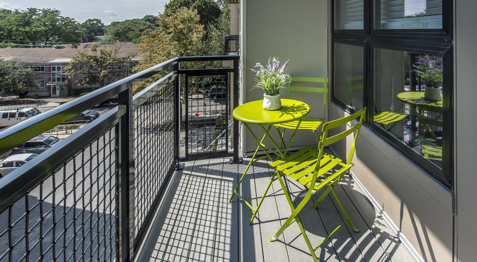 • a table with flowers on it on a balcony